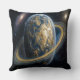 Coussin Planète Bleue Dorée avec des Anneaux