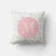 Coussin Points Confetti noirs et blancs Monogramme rose pâ