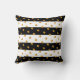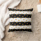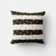 Élégant coussin décoratif avec des points dorés élégants sur fond rayé noir et blanc.