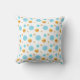Magnifique coussin décoratif avec des points dorés et turquoise sur fond blanc.