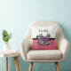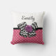 Quelle fille girly peut résister à ce mignon pois rose et blanc carré de pois motif jetez l'oreiller avec un arc de chevron noir et blanc tendance et un chic rose ruban violet. Il est facile de personnaliser ce rétro rose et violet répond au design moderne en ajoutant le nom de votre fille ado à la zone de modèle texte. Image imprimée plate, PAS le ruban de rosette réel et l'arc.