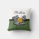 Rien ne dit girly comme ce mignon pois vert et blanc carré pois motif jettent oreiller avec un arc de chevron noir et blanc tendance et un rose ruban jaune chic. Personnalisez en ajoutant le nom de votre ado fille à ce rétro vert et jaune à la conception moderne. Image imprimée plate, PAS le ruban de rosette réel et l'arc.
