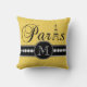 Ce carreau noir, blanc et jaune chic de motif de pois avec a personnalisé votre initiale de monogramme, le mot "Paris" avec Tour Eiffel et une ligne des diamants blancs imprimés sur une bande noire semblera extraordinaire dans votre chambre à coucher ou salon comme coussin d'accent. La galerie Gifts© Elke Clarke de monogramme conçoit le ©