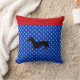 Le motif de pois bleu moderne, à la mode, chic et girly avec une rayure rouge avec un chien noir et brun de saucisse de teckel personnalisé avec vos cadeaux nommés ou cadeaux de monogramme ou vos initiales ou vous peut ajouter votre propre texte personnel. Jolies idées de cadeau de teckel pour des propriétaires et des amoureux de les chiens d'animal familier.