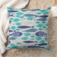 20" x 20" lancer l'oreiller avec l'image d'un assortiment de poissons dans différentes nuances de bleu. Bleu derrière. Voir l'oreiller à lancer rond correspondant. Voir l'ensemble de la collection Under the Sea Coussin dans le DECOR | section Coussin.