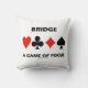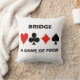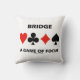 Si vous jouez beaucoup de bridge, vous comprendrez que le jeu de bridge est de se souvenir de ce que l'enchère était, quelles cartes ont été jouées, et quelles cartes restent à jouer. Que vous soyez déclarant ou défenseur, le jeu du pont nécessite beaucoup de concentration. Les joueurs de pont apprécieront cet oreiller de lancer avec les quatre costumes de carte, ainsi que le truisme de pont suivant/dupliqué disant : "Bridge - A Game Of Focus".