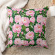 Coussin en pivoines roses douces, parsemé d'un vert foncé, arrière - plan de feuilles