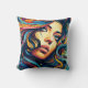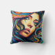 Décorez votre espace de vie avec cet oreiller amusant jetez dans un style pop art avec un visage de femme aux couleurs vives.