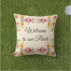 Accueillez vos invités sur votre porche avec cet joli coussin floral rose. Ce coussin a été créé à partir d'une jolie bordure aquarelle pastel. Personnalisez ce coussin avec vos propres mots ou achetez-le tel quel avec "Bienvenue sur notre porche" sur le devant et " Maison douce maison" au dos