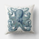 Coussin Poulpe bleu sur le carreau blanc et nautique
