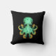 Coussin Poulpe vert mignon de bébé sur le noir