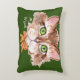 Coussin pour la chambre d'un bébé garçon avec un visage d'aquarelle aux yeux verts Chat et un arc orange sur un arrière - plan vert chasseur. Le nom du coussin peut être modifié. Merci à Creative Fabrica pour certains des éléments du design.