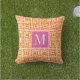 Coussin Preppy Square Lattice Monogram Hot Pink & Orange