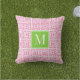 Coussin Preppy Square Lattice Monogram – Pink & Lime