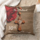 Un crucifix rosaire en bois est vu à côté d'une belle rose rouge. Beau cadeau, souvenir, cadeau ou fête incontournable pour célébrer avec un prêtre son 10e anniversaire d'Ordination. Customisez le nom sur chaque produit.