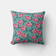 Coussin Pretty Pink Roses and Polka Dot Pattern on Teal