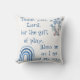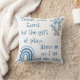Monogrammé pour vous d'insérer votre propre prière si vous le choisissez, carré, jeter l'oreiller. Ce joli thème boho avec un arc-en-ciel bleu et un éléphant, et le texte bleu sur un arrière - plan blanc, dit, Merci, Seigneur, pour le don du jeu. Bénis-moi alors que je vais en chemin.
