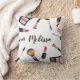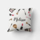 Ce coussin est idéal pour les amateurs de maquillage et de beauté. Ce coussin présente l'illustration des produits de maquillage de Destei, y compris le rouge à lèvres, les pinceaux de maquillage, les palettes, le brillant à lèvres et le mascara. Les éléments de maquillage sont placés autour du coussin laissant de l'espace au milieu pour un nom personnalisé.