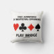 Montrez votre sens aigu de l'humour de pont avec cet oreiller de lancer avec les quatre costumes de carte ainsi que le conseil de pont suivant : "Profitez des adversaires irrationnels Jouez au pont". Pont mémorable disant attitude jetez l'oreiller pour n'importe quel joueur de pont passionné qui reconnaît l'irrationalité quand jouer une main de pont!