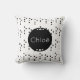 Jetez un coussin d'oreiller et de dispersion avec motif de gouttes de pluie moderne et plaque de nom en noir. Changez le nom de la plaque et le texte comme vous le souhaitez. Mélangez et faites correspondre avec d'autres produits noirs et blancs à fort contraste dans la même collection pour un thème cohésif.