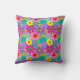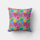 Cet oreiller de lancer a un design des années 70 de fleurs dans différentes couleurs.