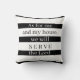 Un coussin charmant et inspirant, cet article a un arrière - plan rayé noir et blanc qui dit : "Pour moi et ma maison, nous servirons le Seigneur". Idéal pour votre séjour, votre espace familial ou vos chambres. Fait un beau cadeau de ménage. Grilles : AMBillustrations http://www.etsy.com/shop/AMBillustrations/