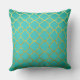 Coussin Quatrefoil Gold Motifs Turquoise Blue Seafoam Latt