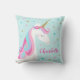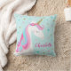 Ce coussin présente une mignonne licorne arc-en-ciel blanc avec étoiles et parties scintillant en faux or sur un arrière - plan pastel aqua. Personnalisez-le avec un nom. Visitez notre magasin ou consultez nos pages de collection pour voir les produits correspondants.