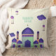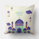 Celebrate the joy of Ramadan with this lively pillow design featuring a multicolored mosque with domes and minarets in purple, green, and pink hues. Hanging lanterns and soft clouds float above, set against a starry purple sky that evokes serenity and festivity. The bold “Ramadan Kareem” greeting adds a cheerful touch—perfect for seasonal décor, prayer spaces, or heartfelt gifts.