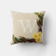 Vous rêvez de tomber ? Ce charmant coussin est décoré d'une couronne feuillue aux couleurs de automne rustique et d'une fleur de ranunculus jaune au coin inférieur droit sur un arrière - plan beige neutre. Il a également une lettre initiale de famille blanche classique en blanc, ce qui en fait un grand cadeau personnalisé.