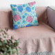 Oreiller chic et coloré pour quelqu'un qui aime le pickleball. Le design comporte des raquettes de pickleball et des balles bleues avec quelques raquettes dans un sac à cordon rose. Le design pickleball peut être trouvé sur d'autres articles dans ma boutique, PageCreativeDesigns.