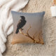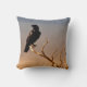 Coussin Raven sur les branches d'arbre ensoleillées,