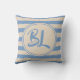 Un monogramme personnalisable se repose au milieu de cette conception rayée bleu-clair et beige.