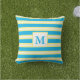 Ajoutez de la convivialité à votre espace de vie extérieur avec des coussins jetés. Ce coussin carré présente des rayures turquoise, jaune et blanc. Ajoutez votre monogramme à ce coussin ou personnalisez-le avec votre nom. Les coussins sont un excellent moyen de mettre en valeur votre coin salon en le rendant visuellement attrayant. Achetez pour vous-même ou offrez en cadeau pour une pendaison de crémaillère ou une autre occasion pour cette personne spéciale. Si vous préférez l'utiliser à l'intérieur, modifiez pour changer le tissu.