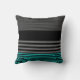 Un coussin de très bon goût de la mode des hommes avec la sarcelle d'hiver fraîche et rayures noires sur du motif rayé noir et gris inférieur et à la mode sur le reste du coussin. Personnalisez en ajoutant votre nom à ce coussin moderne de deco de style contemporain.