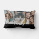 Moderne 3 photo collage lumbar coussin avec nom de famille et année. Trendy, amusant. Facile à modifier le texte.