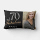 70 et Fabulous Elegant Black 70th Birthday Photo Lumbar Coussin. L'arrière - plan est noir. Personnalisez le panneau avec votre photo, votre nom et faites votre propre cadeau de 70e anniversaire pour une femme.