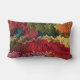 Ce carreau lombaire de beaux-arts colorés comporte une image d'un motif abstrait contemporain de tissu dans des couleurs psychédéliques onduleuses d'arc-en-ciel de rose, de rouge, de jaune, d'orange, de vert, de bleu, de brun, de mauve, pourpre et turquoise qui ressemble à la palette d'un peintre.