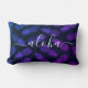 Aloha. Apportez un peu de l'hospitalité hawaïenne dans votre maison avec cette brillante couleur, chic, frappant, élégant, moderne lombaire lancer oreiller sportive croustillant, blanc manuscrit typographie de script et un motif graphique, bleu violet ombre ananas sur un arrière - plan noir. Faites une déclaration amusante et élégante chaque fois que vous vous relaxez dessus. Un grand ajout à votre salon ou chambre, ainsi qu'un merveilleux cadeau pour un ami! Vous pouvez facilement personnaliser ce lombaire lancer oreiller. S'il vous plaît, envoyez-moi un message avec toute question ou demande.
