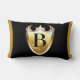 Ce coussin lombaire affiche la lettre majuscule B à l'intérieur d'un élégant décalcomanie de couleur dorée avec une police unique sur le panneau avant et arrière avec tissu tricot doux sans rides, a une fermeture à glissière cachée incluant insert synthétique. Tous les coussins sont fabriqués à 100% polyester avec une sublimation de haute qualité impression recto verso.