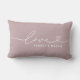 Moderne et élégant design lombaire sur mesure avec oreiller conception simple et minimaliste de la typographie "Amour" qui comprend des détails florissants et de coeur. Personnalisez le texte majuscule ci-dessous avec un monogramme pour un couple ou une famille, un devis ou un autre texte préféré. On peut modifier les couleurs violettes et blanches de couleur lilas clair et mauve rose-ish.