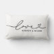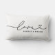 Moderne et élégant design lombaire sur mesure avec oreiller conception simple et minimaliste de la typographie "Amour" qui comprend des détails florissants et de coeur. Personnalisez le texte majuscule ci-dessous avec un monogramme pour un couple ou une famille, un devis ou un autre texte préféré. Les couleurs noir et blanc peuvent être modifiées.