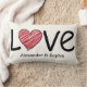 Coussin Rectangle Amour de couple gribouillé cœur moderne noir et ro