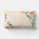 Ce coussin élégant comporte un arrière - plan doux de pêche avec le pois blanc subtil, et les fleurs de pêche et blanches à la mode avec un bon nombre de feuille vert. Le mot "amour" apparaît en beau manuscrit manuscrit, et il y a un endroit à personnaliser avec vos noms.