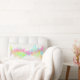 Un coussin lombaire avec un design unique et joyeux et abstrait créé avec des aquarelles. Un arc-en-ciel de couleurs s'infiltre sur la toile dans des couleurs estivales comme le jaune, le vert, le turquoise, le rose et plus. Des cercles et des éclaboussures dansent à travers la page dans une ligne horizontale sur un arrière - plan de couleur crème.