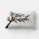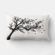 Une image forte en noir et blanc d'un arbre courbé et soufflant dans le vent, ses feuilles se dispersent dans l'air. Une coussin parfaite pour toute décoration.
