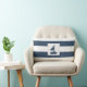 Gras rayures bleu marine et blanc avec coussin motif de style nautique voilier.