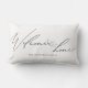 Simple et chic, le coussin "bienvenue à la maison" propose un script de calligraphie moderne avec nom de famille en typographie noire.