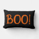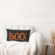 L'arrière - plan dispose d'une couleur noire et solide personnalisable. Coussin lombaire à thème Halloween pour votre décoration d'octobre. Vous pouvez customiser la typographie boney "BOO !".