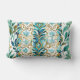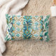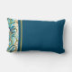Coussin Rectangle Bleu et or. Feuille et fleuris, rayures